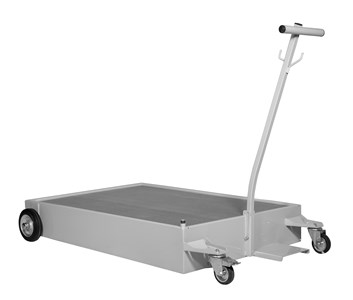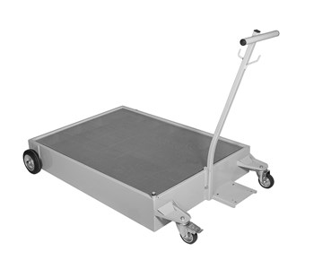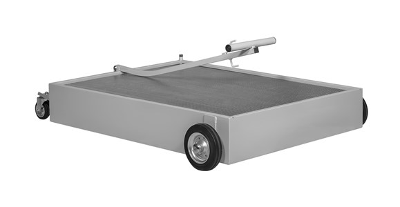 Teräksinen jäteöljyvaunu ritilällä. Vaunu soveltuu myös jäteglykolille. Vaunu tyhjennetään erillisellä kalvopumpulla.